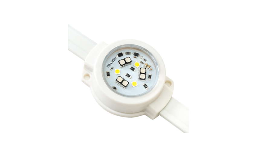 A high brightness, slim media solution designed to integrate into a facade, outline buildings, or trace lines of architectural surfaces.