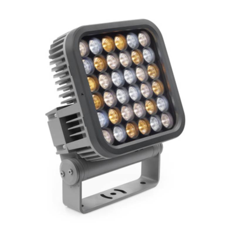 A high brightness, energy efficient exterior luminaire designed for architectural color changing facades.